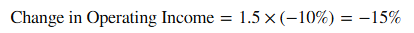 The Degree of Operating Leverage (DOL) magnifies the positive and the negative sales changes. Therefore, assuming that DOL stands at 1.5, and the sales fall by 10 percent, then the operating income will fall by 1.5 percent in sales.